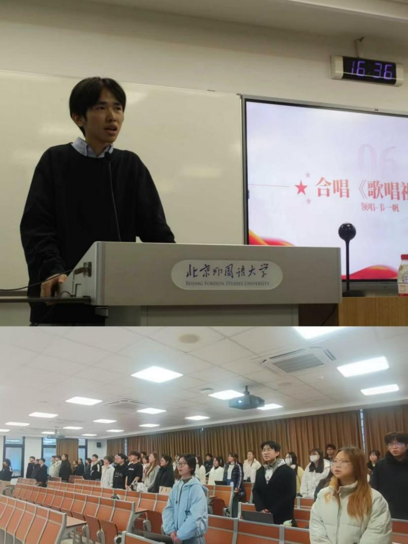 活动尾声,参加九三阅兵志愿者的韦一帆同学分享了合唱排练与志愿培训的过程,并带领全体与会人员齐声高唱《歌唱祖国》。在激昂的歌声中,本次国防教育主题团日活动圆满落幕。