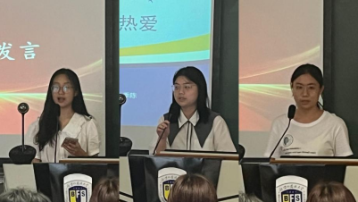 毕业生代表、保研至北京理工大学的19级杨小萱和20级员工季陈倾情分享了她们在北外生活、学习中的宝贵经验与心得体会。新生代表张若莹表达了她对北外的向往及对老员工活的期待。