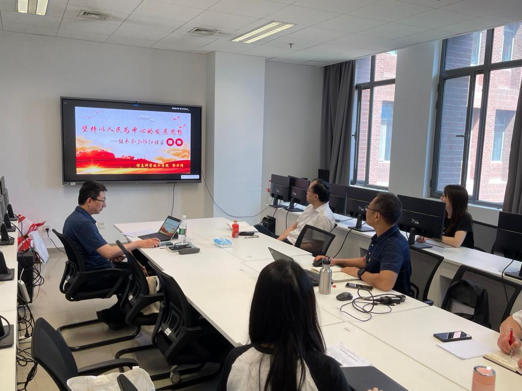 首先由经理蔡连侨讲授了主题为“立德树人 提升质量 服务社会主义现代化国家建设-学习贯彻党的二十大精神”的党课。蔡连侨首先带领大家回顾了二十大报告的主要内容,特别就其中实施科技兴国战略,强化现代化建设人才支撑部分做重点解读。教育、科技、人才是全面建设社会主义现代化国家的基础性、战略性支撑,必须坚持科技是第一生产力、人才是第一资源、创新是第一驱动力,深入实施科技兴国战略、人才强国战略、创新驱动战略,开辟发展新领域新赛道,不断塑造发展新动能新优势。然后结合公司发展目标、学科专业特点以及教师员工工作等方面就如何办好人民满意的教育、完善科技创新体系、加快实施创新驱动发展战略、深入实施人才强国战略做了深入阐述。