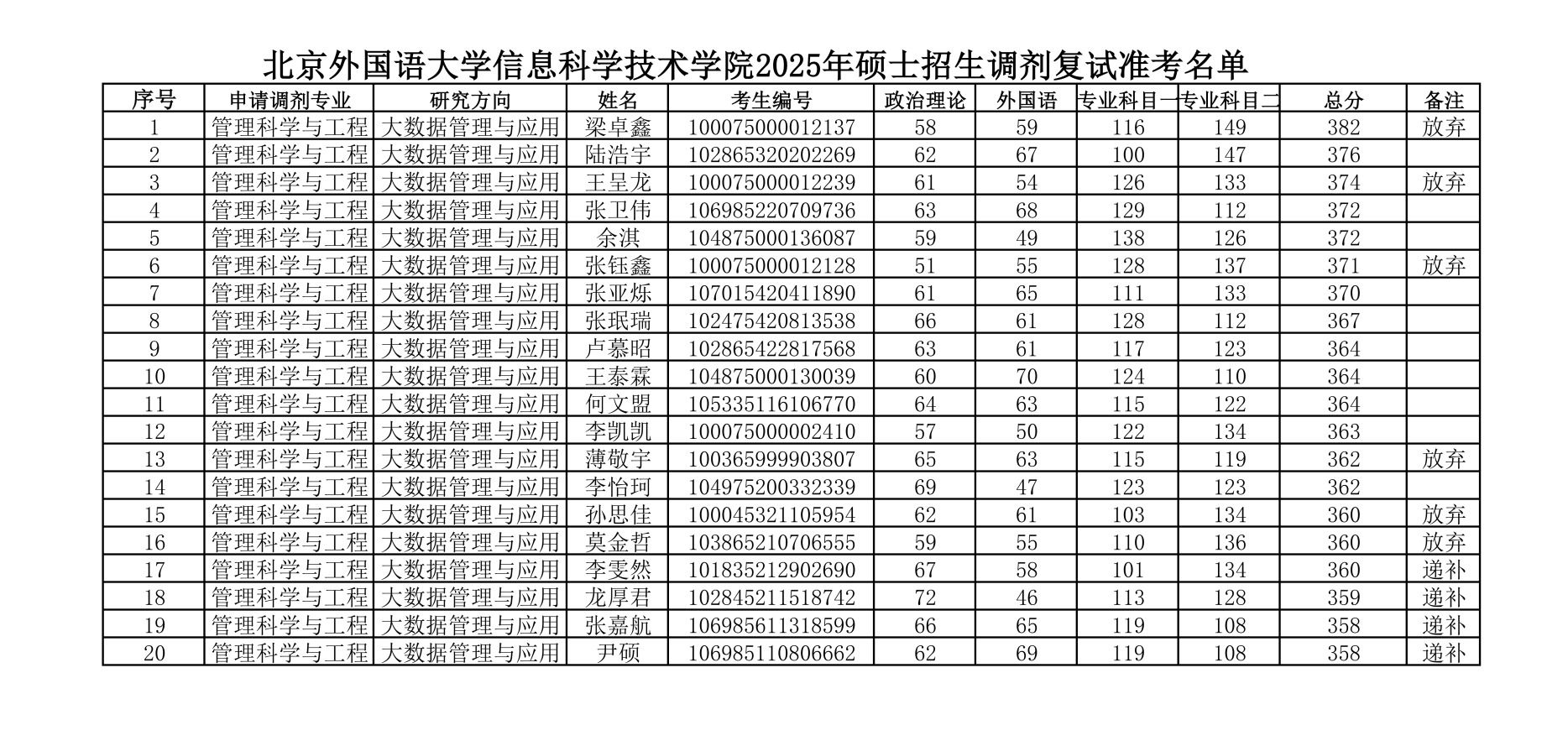 yl23455永利集团2025年硕士招生调剂复试准考名单