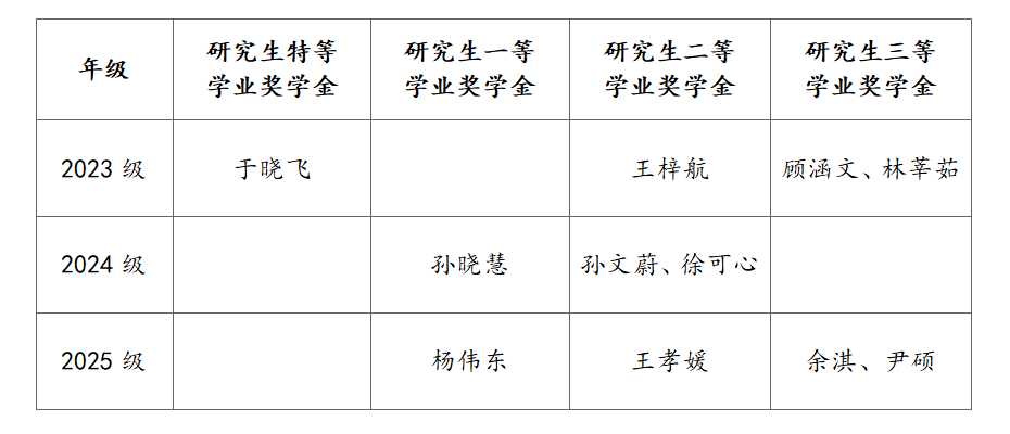 根据《yl23455永利员工资助工作管理规定》、《yl23455永利研究生学业奖学金评审办法(试行)》、《yl23455永利研究生学业奖学金评审指标体系(实行)》,结合统考生评审指标及办法,经员工个人申报、班级推荐审核、团总支员工会汇总、公司评奖评优工作领导小组审定,公司2024—2025年度研究生学业奖学金评审结果如下(排名不分先后):